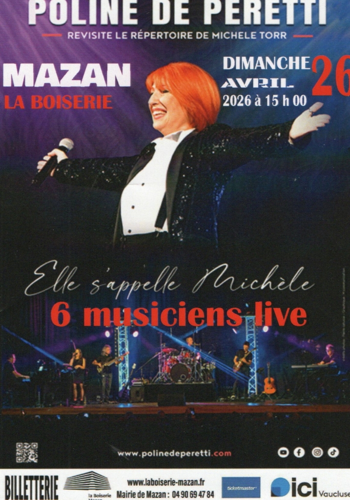 Actuellement, Poline de PERETTI présente son dernier spectacle captivant intitulé “Elle s’appelle Michèle”, une version actualisée et revisitée qui offre une expérience musicale unique. Accompagnée de musiciens talentueux, Poline de PERETTI interprète avec passion des chansons intemporelles, offrant ainsi une performance scénique captivante.